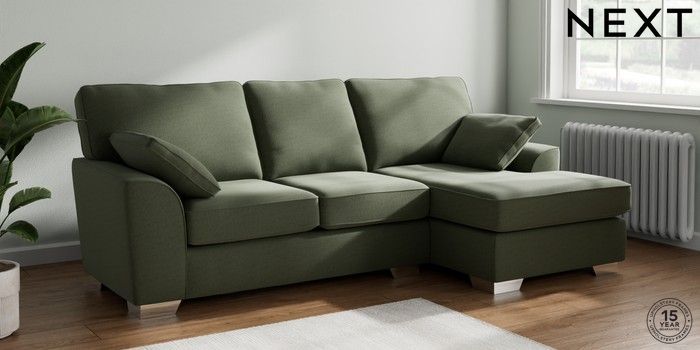 7.3.1 Buy Stamford Medium Sofa Chaise - Right Hand Relaxed Linen Look Dark Green Large Square Angle - Chrome Metal from the Next UK online shop Click here to use our accessible website