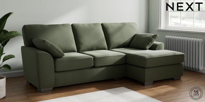 7.3.1 Buy Stamford Medium Sofa Chaise - Right Hand Relaxed Linen Look Dark Green Large Square Angle - Gunmetal from the Next UK online shop Click here to use our accessible website