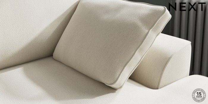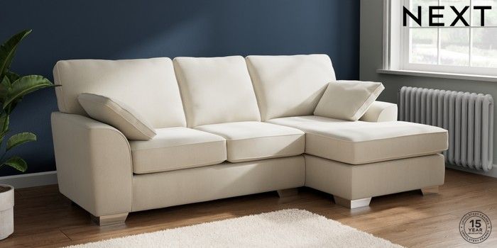 7.2.10 Buy Stamford Medium Sofa Chaise - Right Hand Relaxed Linen Look Oyster Large Square Angle - Chrome Metal from the Next UK online shop Click here to use our accessible website