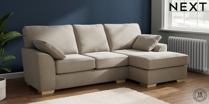 7.2.10 Buy Stamford Medium Sofa Chaise - Right Hand Ripple Chenille Light Natural Large Square Angle - Light from the Next UK online shop Click here to use our accessible website