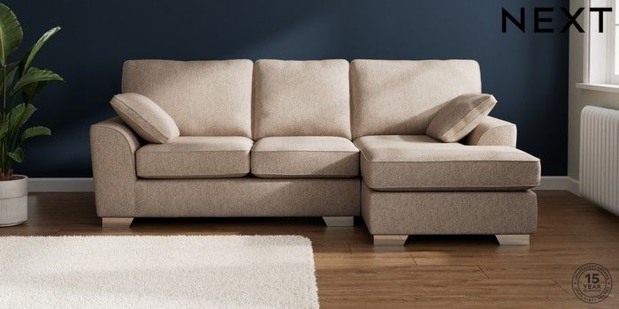 7.3.1 Buy Stamford Medium Sofa Chaise - Right Hand Tweedy Chenille Mid Natural Large Square Angle - Chrome Metal from the Next UK online shop Click here to use our accessible website