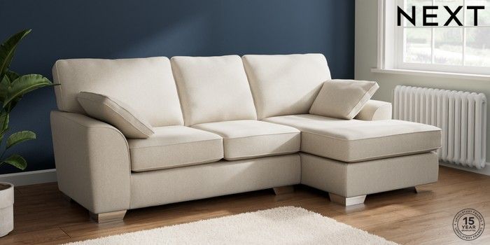 7.2.10 Buy Stamford Medium Sofa Chaise - Right Hand Tweedy Chenille Oyster Large Square Angle - Chrome Metal from the Next UK online shop Click here to use our accessible website
