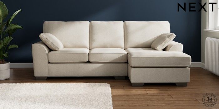 7.3.1 Buy Stamford Medium Sofa Chaise - Right Hand Tweedy Chenille Oyster Large Square Angle - Gunmetal from the Next UK online shop Click here to use our accessible website