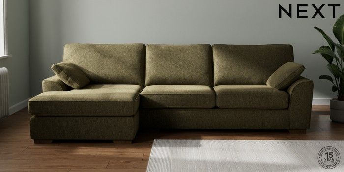7.2.6 Buy Stamford Large Sofa Chaise - Left Hand Cotswold Chenille Dark Green Large Square Angle - Mid from the Next UK online shop Click here to use our accessible website