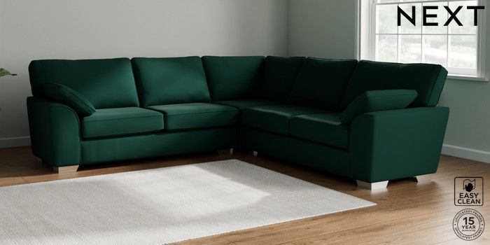 6.12.1 Buy Stamford Large Corner Sofa - Universal Plush Velvet Easy Clean Bottle Green Large Square Angle - Chrome Metal from the Next UK online shop Click here to use our accessible website