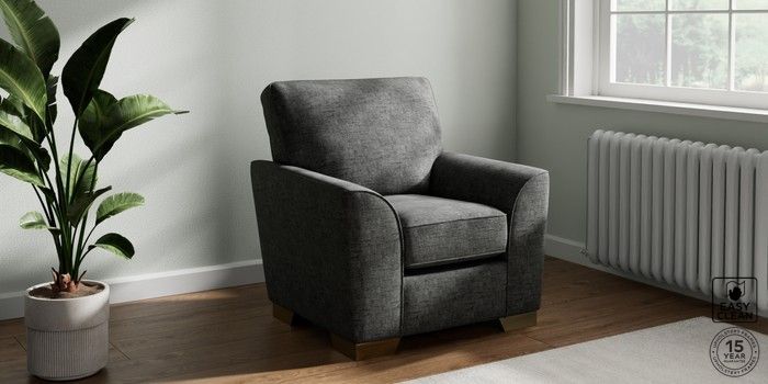 6.12.13 Buy Stamford Small Armchair Boucle Weave Easy Clean Charcoal Grey Square Angle - Brushed Brass from the Next UK online shop Click here to use our accessible website