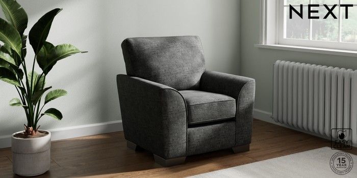 6.12.13 Buy Stamford Small Armchair Boucle Weave Easy Clean Charcoal Grey Square Angle - Gunmetal from the Next UK online shop Click here to use our accessible website
