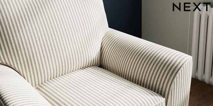 7.3.1 Buy Stamford Small Armchair Chenille Stripe Moss Green Square Angle - Chrome Metal from the Next UK online shop Click here to use our accessible website