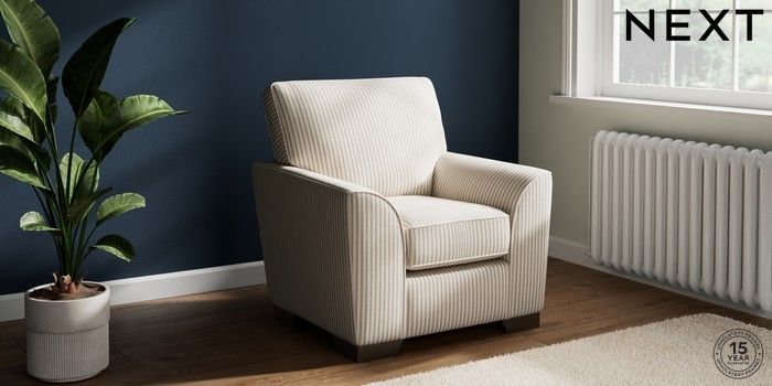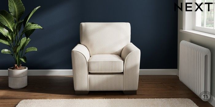 7.3.1 Buy Stamford Small Armchair Chenille Stripe Natural Square Angle - Gunmetal from the Next UK online shop Click here to use our accessible website