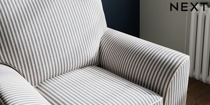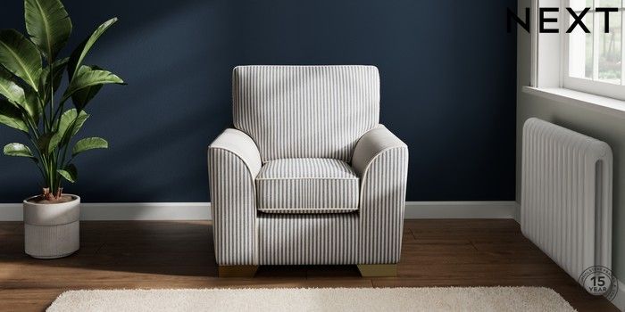 7.3.1 Buy Stamford Small Armchair Chenille Stripe Slate Blue Square Angle - Brushed Brass from the Next UK online shop Click here to use our accessible website