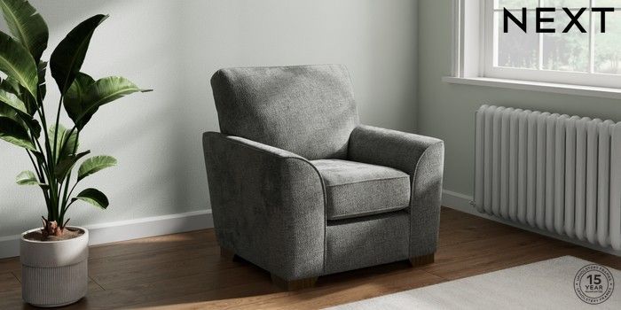 6.12.13 Buy Stamford Small Armchair Chunky Chenille Dark Grey Square Angle - Mid from the Next UK online shop Click here to use our accessible website