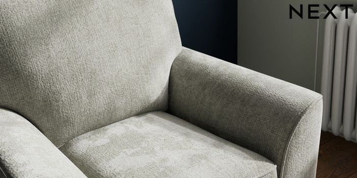 6.12.13 Buy Stamford Small Armchair Chunky Chenille Light Grey Square Angle - Brushed Brass from the Next UK online shop Click here to use our accessible website