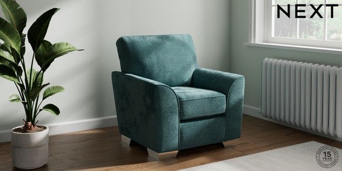 6.12.13 Buy Stamford Small Armchair Chunky Chenille Mid Teal Green Square Angle - Chrome Metal from the Next UK online shop Click here to use our accessible website