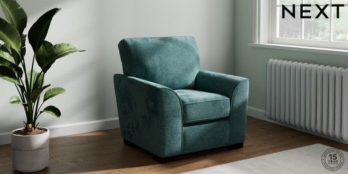 6.12.13 Buy Stamford Small Armchair Chunky Chenille Mid Teal Green Square Angle - Dark from the Next UK online shop Click here to use our accessible website