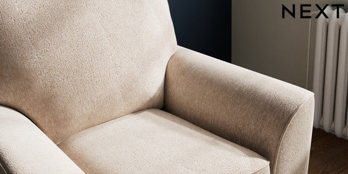 6.12.13 Buy Stamford Small Armchair Cotswold Chenille Light Natural Square Angle - Gunmetal from the Next UK online shop Click here to use our accessible website