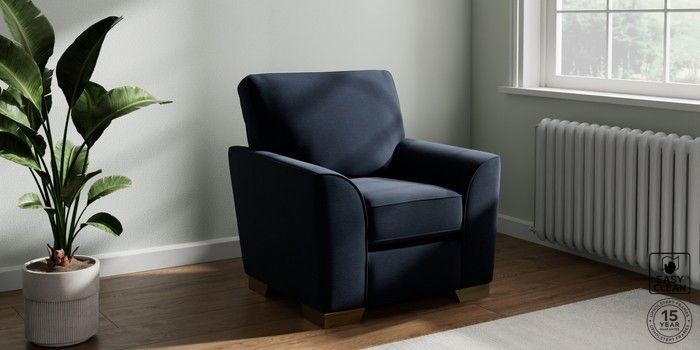 6.12.13 Buy Stamford Small Armchair Fine Chenille Easy Clean Dark Navy Blue Square Angle - Brushed Brass from the Next UK online shop Click here to use our accessible website