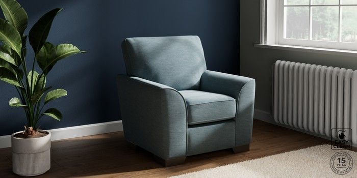 6.12.13 Buy Stamford Small Armchair Fine Chenille Easy Clean Mid Blue Square Angle - Gunmetal from the Next UK online shop Click here to use our accessible website