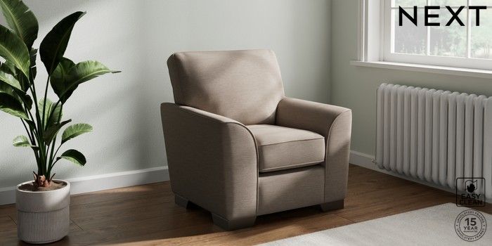 6.12.13 Buy Stamford Small Armchair Fine Chenille Easy Clean Mid Taupe Brown Square Angle - Gunmetal from the Next UK online shop Click here to use our accessible website