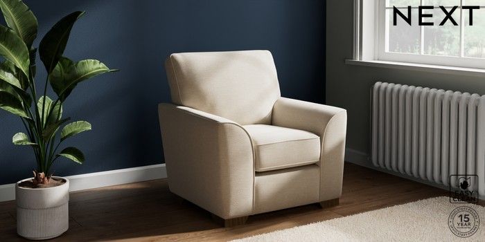 6.12.13 Buy Stamford Small Armchair Fine Chenille Easy Clean Oyster Square Angle - Mid from the Next UK online shop Click here to use our accessible website