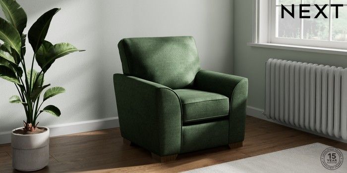 6.12.13 Buy Stamford Small Armchair Luxe Chenille Dark Green Square Angle - Mid from the Next UK online shop Click here to use our accessible website