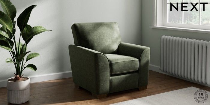 7.0.3 Buy Stamford Small Armchair Luxe Chenille Mid Green Square Angle - Mid from the Next UK online shop Click here to use our accessible website
