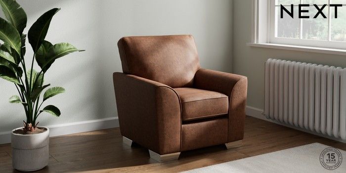 6.12.13 Buy Stamford Small Armchair Monza Faux Leather Easy Clean Chestnut Brown Square Angle - Chrome Metal from the Next UK online shop Click here to use our accessible website