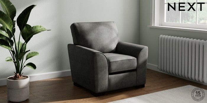6.12.13 Buy Stamford Small Armchair Monza Faux Leather Easy Clean Dark Grey Square Angle - Dark from the Next UK online shop Click here to use our accessible website