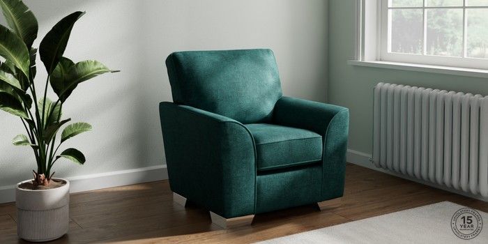6.12.13 Buy Stamford Small Armchair Plush Chenille Dark Teal Green Square Angle - Chrome Metal from the Next UK online shop Click here to use our accessible website