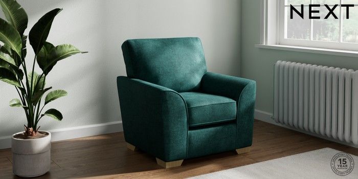 6.12.13 Buy Stamford Small Armchair Plush Chenille Dark Teal Green Square Angle - Light from the Next UK online shop Click here to use our accessible website