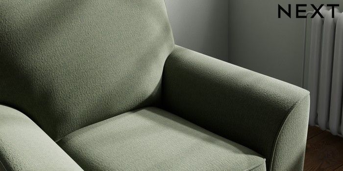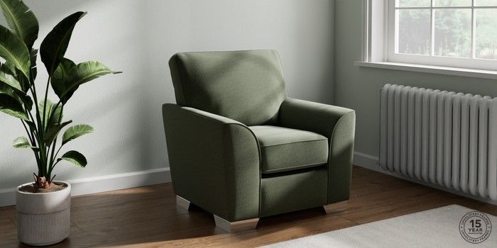 6.12.13 Buy Stamford Small Armchair Relaxed Linen Look Dark Green Square Angle - Chrome Metal from the Next UK online shop Click here to use our accessible website