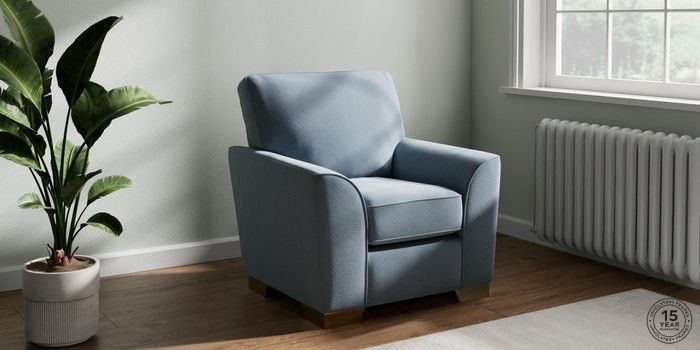 6.12.13 Buy Stamford Small Armchair Relaxed Linen Look Mid Blue Square Angle - Brushed Brass from the Next UK online shop Click here to use our accessible website