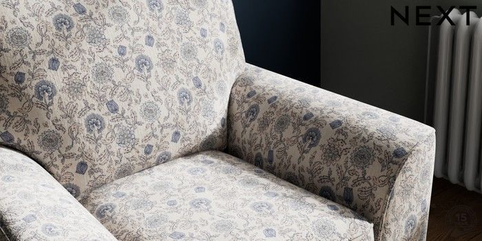 7.3.1 Buy Stamford Small Armchair Relaxed Linen Look Print Woodblock Floral Blue Square Angle - Gunmetal from the Next UK online shop