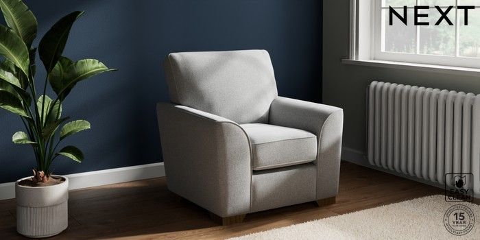 6.12.13 Buy Stamford Small Armchair Tweedy Blend Easy Clean Light Silver Grey Square Angle - Mid from the Next UK online shop Click here to use our accessible website