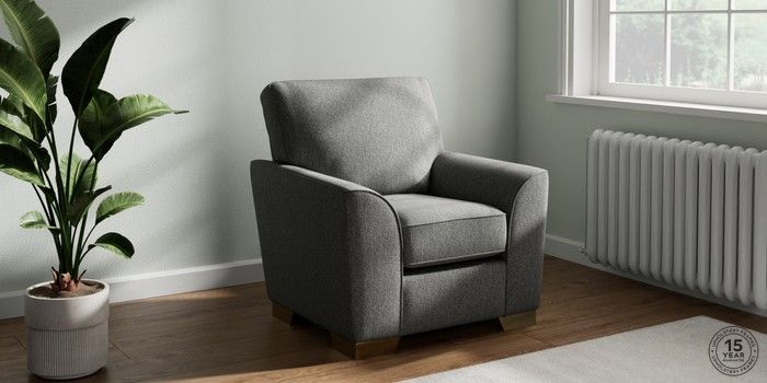 6.12.13 Buy Stamford Small Armchair Tweedy Chenille Dark Grey Square Angle - Brushed Brass from the Next UK online shop Click here to use our accessible website