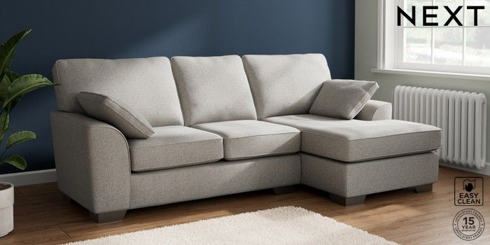 7.2.6 Buy Stamford Medium Sofa Chaise - Right Hand Woven Chenille Easy Clean Light Grey Large Square Angle - Gunmetal from the Next UK online shop Click here to use our accessible website