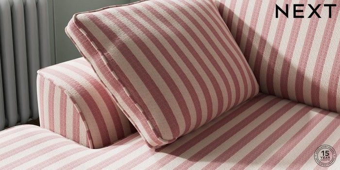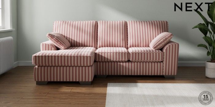 7.3.1 Buy Stamford Small Sofa Chaise - Left Hand Bold Chenille Stripe Dark Pink Large Square Angle - Gunmetal from the Next UK online shop Click here to use our accessible website