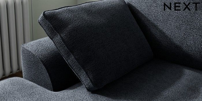7.2.10 Buy Stamford Small Sofa Chaise - Left Hand Boucle Chenille Dark Slate Blue Large Square Angle - Mid from the Next UK online shop Click here to use our accessible website