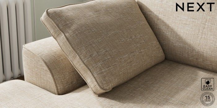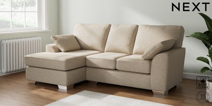 7.3.1 Buy Stamford Small Sofa Chaise - Left Hand Boucle Weave Easy Clean Dark Natural Large Square Angle - Chrome Metal from the Next UK online shop Click here to use our accessible website