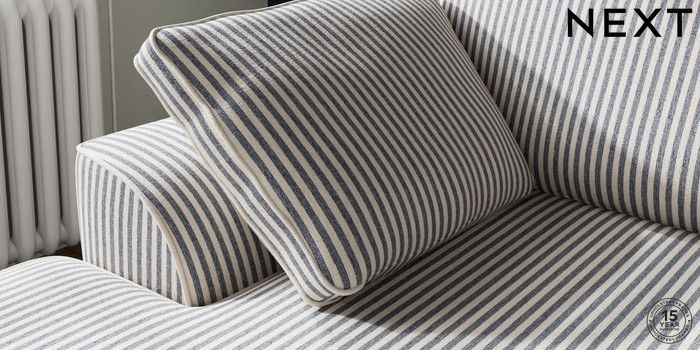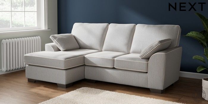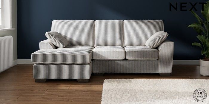 7.3.1 Buy Stamford Small Sofa Chaise - Left Hand Chenille Stripe Slate Blue Large Square Angle - Gunmetal from the Next UK online shop Click here to use our accessible website