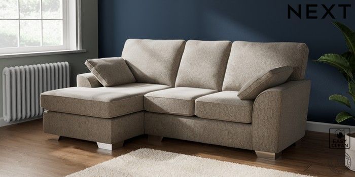 7.3.1 Buy Stamford Small Sofa Chaise - Left Hand Chunky Boucle Easy Clean Dove Large Square Angle - Chrome Metal from the Next UK online shop Click here to use our accessible website