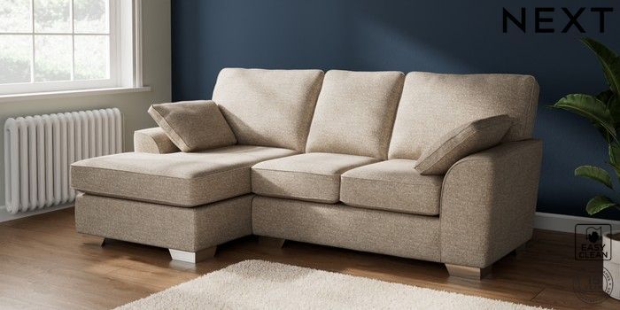 7.3.1 Buy Stamford Small Sofa Chaise - Left Hand Chunky Boucle Easy Clean Mid Natural Large Square Angle - Chrome Metal from the Next UK online shop Click here to use our accessible website