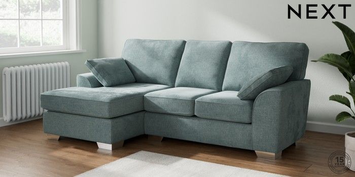 7.3.1 Buy Stamford Small Sofa Chaise - Left Hand Chunky Chenille Light Teal Green Large Square Angle - Chrome Metal from the Next UK online shop Click here to use our accessible website