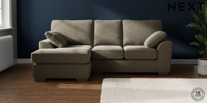 7.2.10 Buy Stamford Small Sofa Chaise - Left Hand Chunky Marl Light Olive Green Large Square Angle - Gunmetal from the Next UK online shop Click here to use our accessible website