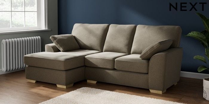 7.2.10 Buy Stamford Small Sofa Chaise - Left Hand Chunky Marl Light Olive Green Large Square Angle - Light from the Next UK online shop Click here to use our accessible website