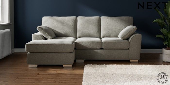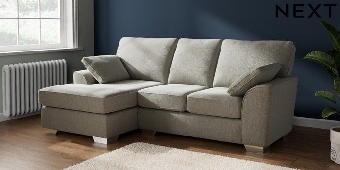 7.2.10 Buy Stamford Small Sofa Chaise - Left Hand Chunky Texture Dove Large Square Angle - Chrome Metal from the Next UK online shop Click here to use our accessible website