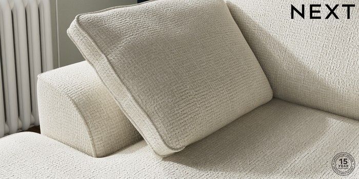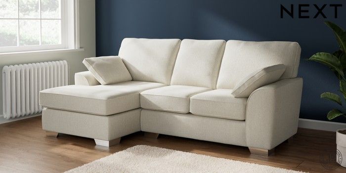 7.2.10 Buy Stamford Small Sofa Chaise - Left Hand Chunky Texture Oyster Large Square Angle - Chrome Metal from the Next UK online shop Click here to use our accessible website