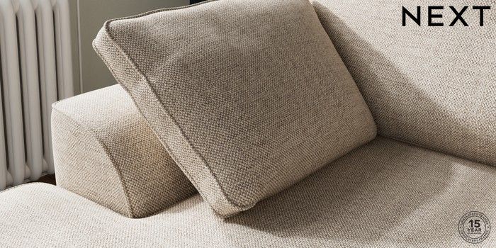 7.3.1 Buy Stamford Small Sofa Chaise - Left Hand Chunky Weave Mid Natural Large Square Angle - Chrome Metal from the Next UK online shop Click here to use our accessible website