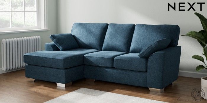 7.2.10 Buy Stamford Small Sofa Chaise - Left Hand Cotswold Chenille Dark Blue Large Square Angle - Chrome Metal from the Next UK online shop Click here to use our accessible website
