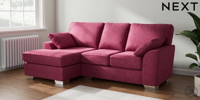 7.2.10 Buy Stamford Small Sofa Chaise - Left Hand Cotswold Chenille Dark Raspberry Pink Large Square Angle - Chrome Metal from the Next UK online shop Click here to use our accessible website