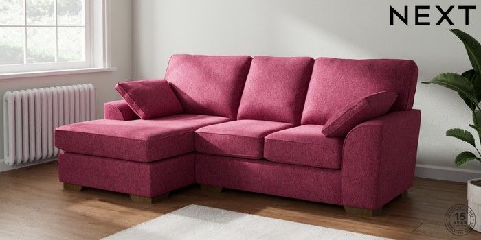 7.2.10 Buy Stamford Small Sofa Chaise - Left Hand Cotswold Chenille Dark Raspberry Pink Large Square Angle - Mid from the Next UK online shop Click here to use our accessible website
